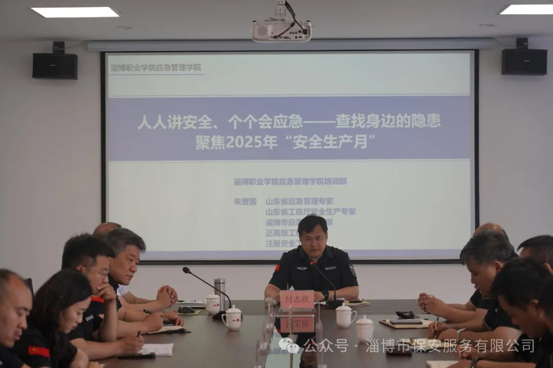 為深入貫徹市國(guó)資委“安全生產(chǎn)月”活動(dòng)要求,6月4日,市保安公司聚焦“人人講安全、個(gè)個(gè)會(huì)應(yīng)急——查找身邊的隱患”,邀請(qǐng)山東省應(yīng)急管理專家、正高級(jí)工程師,山東齊安檢測(cè)技術(shù)有限公司安全技術(shù)部經(jīng)理朱登國(guó)進(jìn)行專題授課,市保安公司黨委書記、董事長(zhǎng)付志欣主持,公司黨委委員,各部室、中心、子公司,各大隊(duì)負(fù)責(zé)人及安全分管領(lǐng)導(dǎo)參會(huì)。